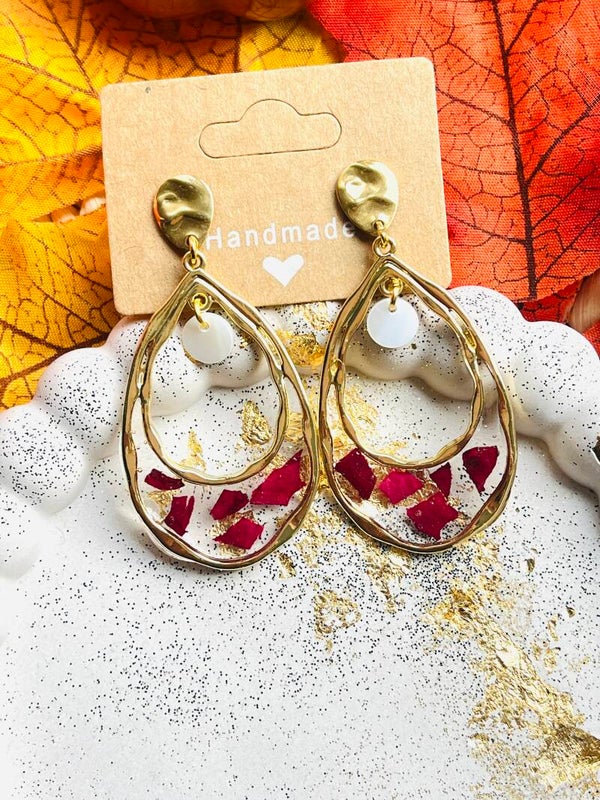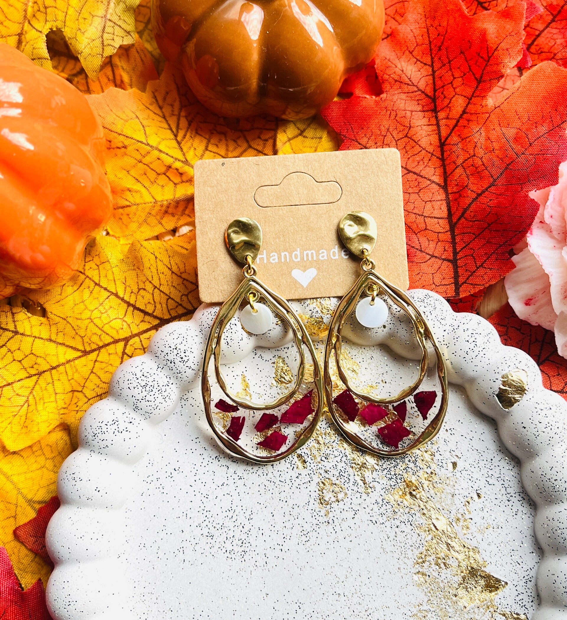 De l'élégance et un air de poétique pour ces jolies boucles d'oreilles en modèle unique avec inclusion de pétales de rose séchées naturelles , réalisées dans mon atelier avec Passion 🌸