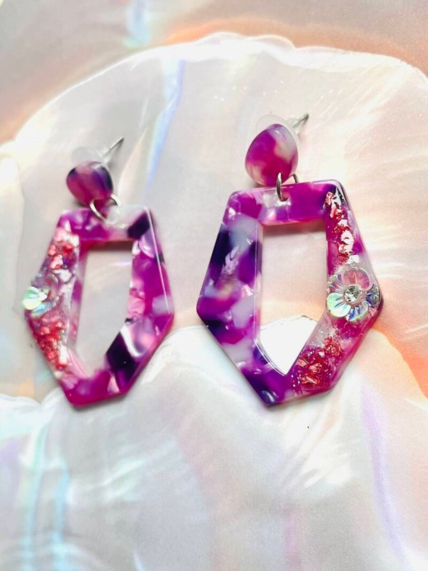 Ces boucles d’oreilles en acrylique avec décor en résine sont une véritable explosion de couleurs 💜💖
